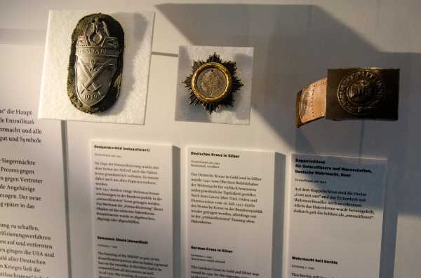4. Имперский орёл с оторванной свастикой, и золдьбухи с зарисованной свастикой, которые ещё некоторое время в послевоенной Германии использовались для идентификации личности.