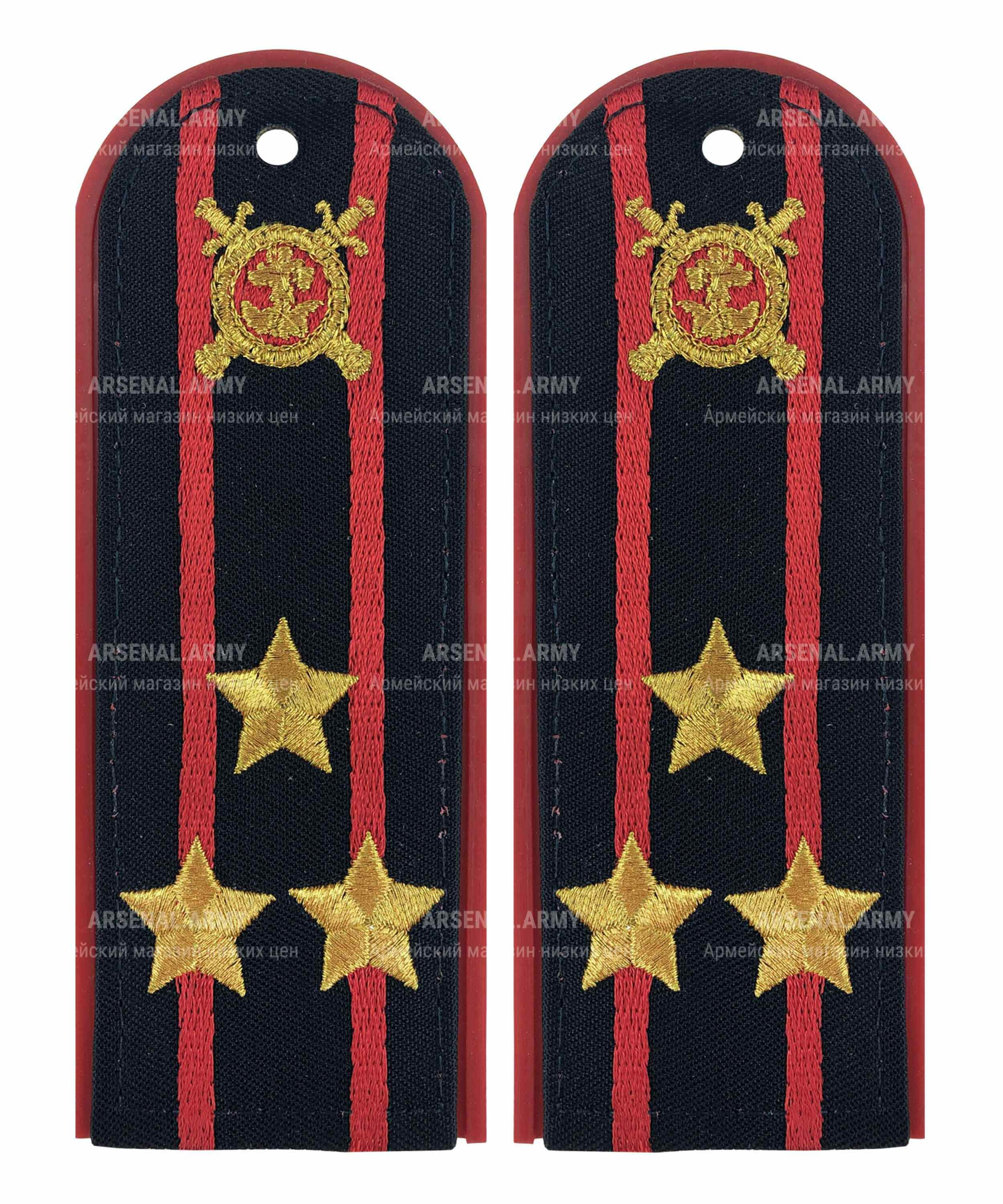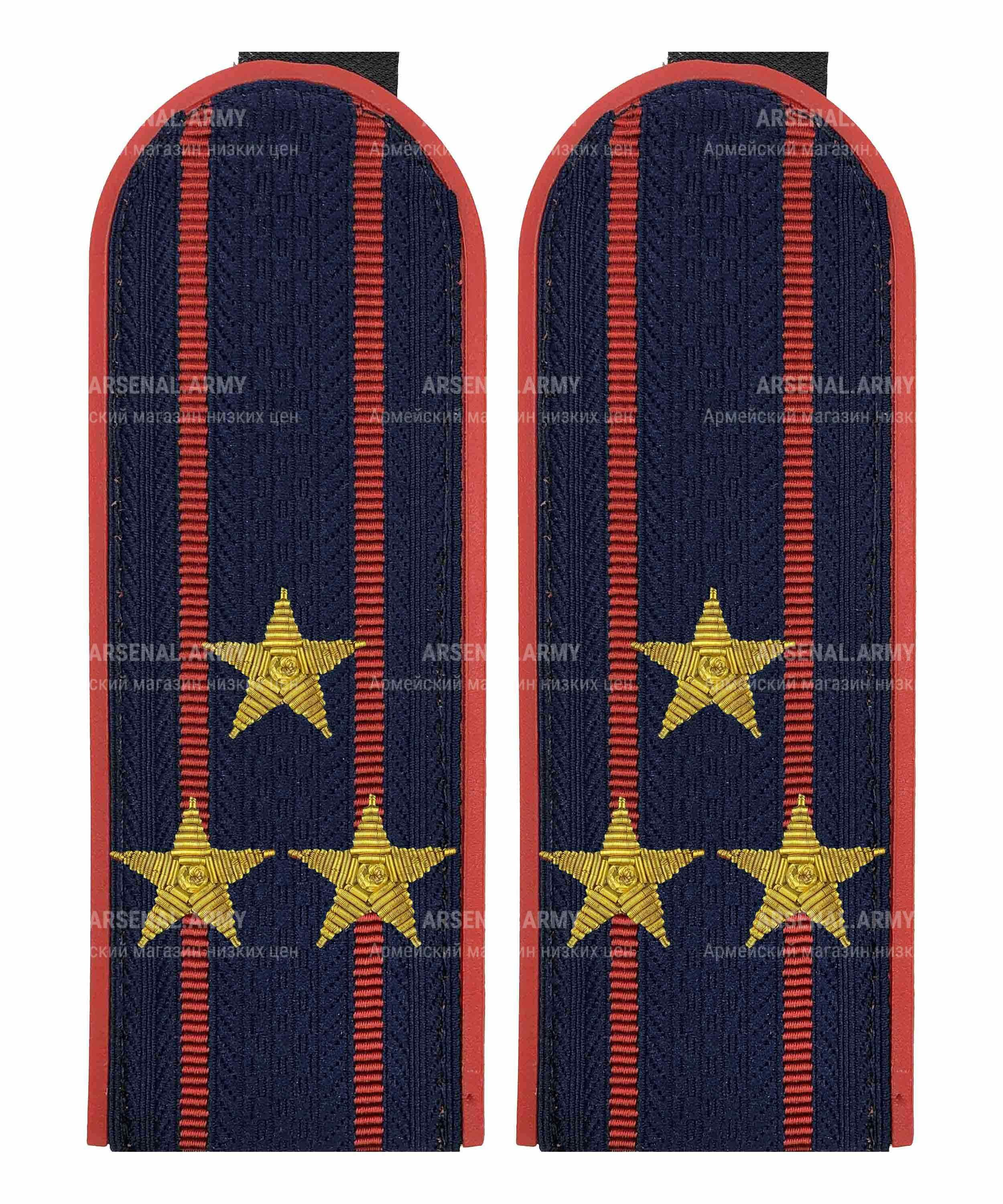 - Два просвета и бо́льшие звёздочки. На фальш-погонах просветов нет.
