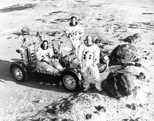 Позднее машину усовершенствовали, и астронавты катались на ней по пустынеНа видео мы наблюдаем поездку астронавтов на самоходном аппарате «Ровер». Раньше «Ровер» показывали только в припаркованном варианте. Это было смешно. На первых фотографиях луномобиля все обращали внимание отсутствие колеи от колес. Следов от ног астронавтов — сколько угодно, а от колес — нет. Ни спереди, ни сзади. Как луномобиль оказался в данном конкретном месте, не оставив следов своего прибытия? Ходила версия, что его просто выставляли на съемочную площадку подъемным краном.