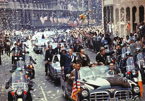 — Давайте выясним, зачем понадобилась лунная программа США. Американцы безнадежно отставали от СССР в космосе. 4 октября 1957 года СССР запустил первый искусственный спутник Земли на околоземную орбиту. 19 августа 1960 года собаки Белка и Стрелка стали первыми живыми существами, совершившими суточный орбитальный полет и благополучно вернувшимися обратно. Первым человеком, побывавшем в космосе, стал советский космонавт Юрий Гагарин. А что же американцы? Они чувствовали себя ущемленными. И потому ликовали, когда президент США Джон Кеннеди объявил о предстоящем пилотируемом полете американских астронавтов на Луну. Правда, Кеннеди его так и не дождался. Провожал и встречал американских астронавтов следующий президент — Ричард Никсон.