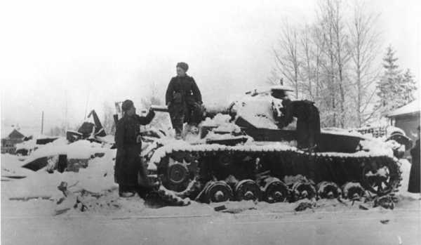 Красноармейцы на немецком танке Pz.Kpfw. III, захваченном в Крюково под Москвой