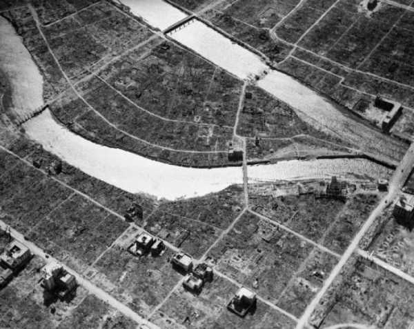 Большинство территории Хиросимы было стерто с лица земли взрывом атомной бомбы. Это первая аэрофотография после взрыва, сделанная 1 сентября 1945 года.