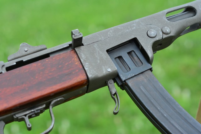 Деревянный приклад в основном изготавливали из березы. В торце приклада находился пеналов котором находился ЗИП для ухода за автоматом. Для прицеливания имелся секторный прицел. В первые дни войны использовался откидной прицел с делением от 50 до 500 метров с шагом по 50 метров, который в дальнейшем был заменен прицелом с положением на 100 и 200 метров. Ограничение в 200 метров не означает его мало эффективность-это решение было высших армейских чиновников, что большая прицельная возможность увеличит расход боеприпасов. Данное решение было со сменой 500 метрового прицела на 200 метровый, так как часто приходилось обстреливать колоны противников на удалении или вести огонь в полях. Ствольная коробка была единым целым с кожухом ствола и производилась холодной штамповкой. Кожух ствола обеспечивал сохран ствола от различных ударов, а также уберегал руки бойца от ожогов.