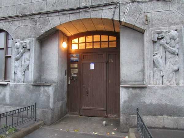 Единственный дом в Петербурге, в декоре которого использованы ассирийские мотивы. На стенах — многочисленные рельефы, лаконичные и геометризированные. В скульптурное оформление фасада введены человеческие фигуры. Скульптурные изображения не повторяются.