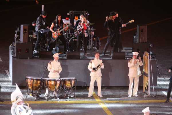 На Красной площади произошло историческое «слияние рок-группы и военного духового оркестра». Об этом объявили организаторы «Спасской башни».