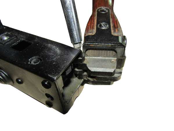 Первое опциональное цевье поставил от РПК. потребовалось слегка распилить часть цевья, которая входит в ствольную коробку, «зуб» и немного внутри цевья, чтоб оно наделось на расширяющийся к патроннику ствол. никаких особых достоинств у такого цевья нет. хват неудобный, цевье скользкое. Но антуражность АКСУ зашкаливает. в комплекте с таким цевьем надо для 12к обязательно сделать дтк в стиле того же аксу и продавать их комплектом+ еще рамочный складной стальной приклад.
