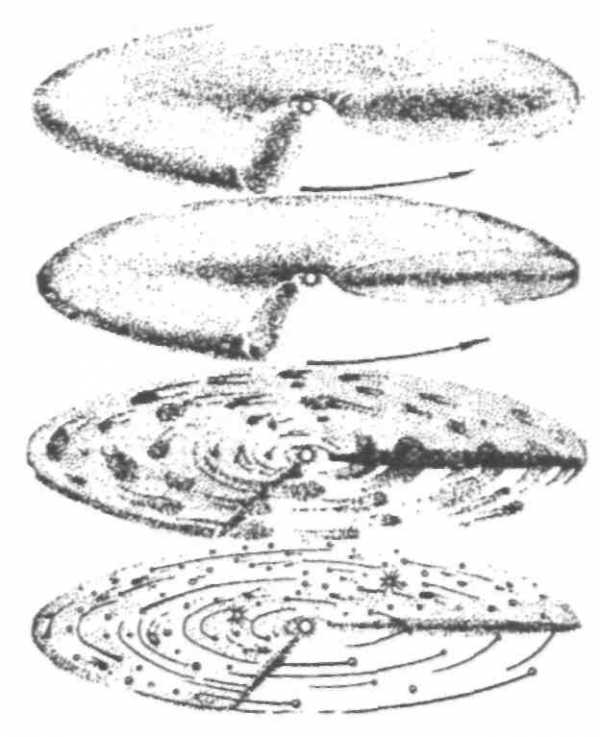 Рис. 13.1. Образование планет по гипотезе О. Ю. Шмидта