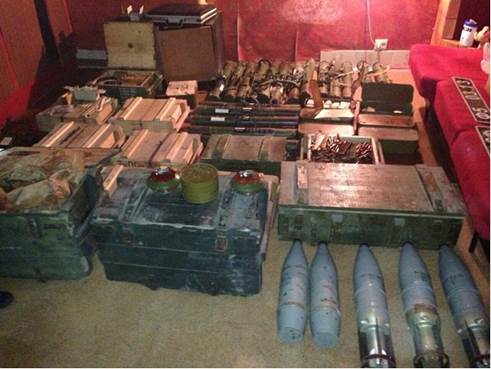 Изучаемое вооружение включало штурмовые винтовки, гранатометы и противотанковые управляемые орудия. Среди других единиц осмотренной военной техники и техники были фугасы, большое количество боеприпасов, оптические прицелы, беспилотные летательные аппараты (БПЛА), медицинское и защитное оборудование, основные боевые танки, одна реактивная система залпового огня, бронетехника