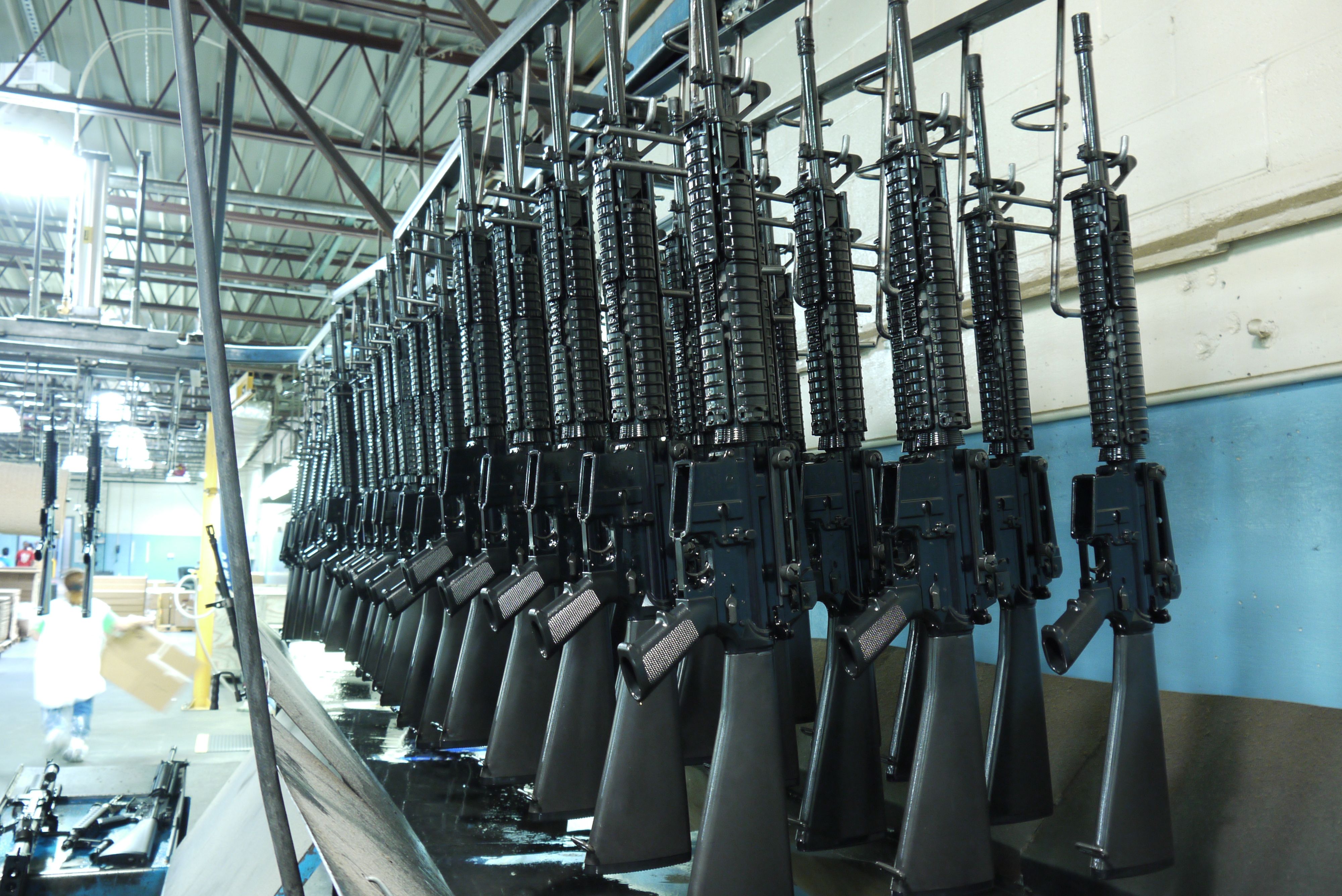 Рабочие собирают пистолеты Browning-Inglis Hi-Power на военном заводе Джона Инглиса, Канада, апрель 1944 г.Он состоит из коммерческой промышленности, занимающейся исследованиями, разработками, производством и обслуживанием военной техники, оборудования и объектов. Оружейные компании, также именуемые оборонными подрядчиками или военной промышленностью, производят вооружение в основном для вооруженных сил государств. Государственные ведомства также работают в сфере вооружений, покупая и продавая оружие, боеприпасы и другие предметы военного назначения.