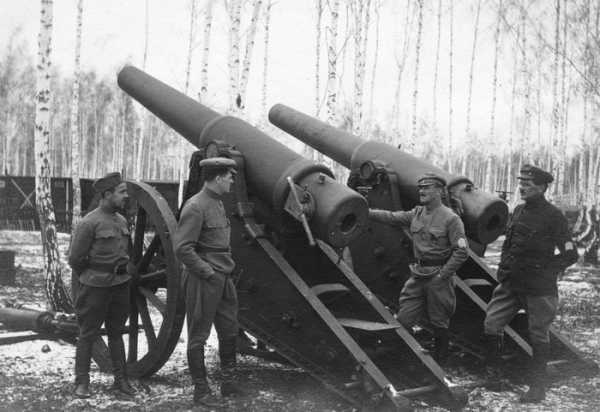 Для борьбы с германскими средними танками подобрали старые осадные орудия калибра 42 линии и шесть дюймов, которые использовались еще при освобождении Болгарии от турецкого ига. После окончания войны по причине сильной изношенности стволов орудия эти доставили на Мытищинский арсенал, где они хранились в законсервированном виде. Стрельба из них была небезопасна, но 5-7 выстрелов они еще сделать могли. Для 42-линеек снарядов было достаточно, а вот для шестидюймовок родных снарядов не оказалось.