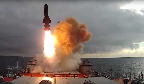 Пуск ракеты 3М45 Гранит» с атомного ракетного крейсера пр.11442 «Пётр Великий», 19 сентября 2017 г.