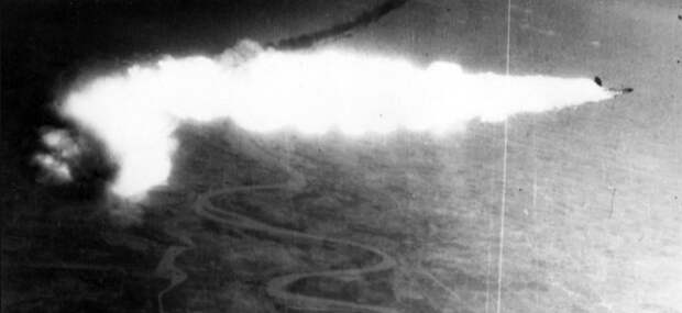 900:13 Зенитная ракета взрывается рядом с F-4 Phantom. В последние годы войны во Вьетнаме у северных вьетнамцев было до 200 объектов SA-2 в Северном Вьетнаме.