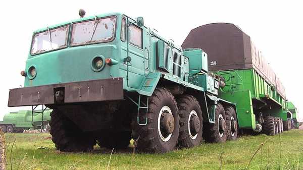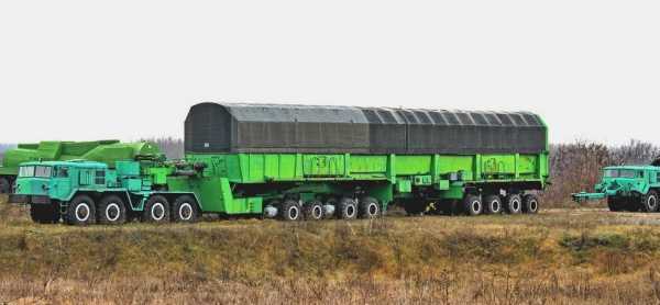 На заглавной фотографии — уникальный трехсекционный автопоезд 15Т284М для транспортировки и перегрузки межконтинентальных ракет с дальностью поражения 10,5 тысяч километров.