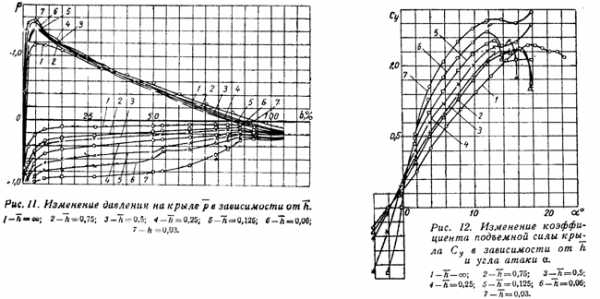 В статье «Расчетное исследование влияния параметров профиля на его аэродинамические характеристики вблизи экрана», авторы В.Н. Архангельский, С. И. Коновалов, Труды ЦАГИ, вып. 2304 (1985), с. 12-21 [2], показано, что в зависимости коэффициента подъемной силы профиля от угла тангажа при сохранении постоянной высоты над экраном cy = f(,H) при H=const всегда есть такие углы тангажа *, при которых происходит разрыв в зависимости XfH = f() 2-го рода, т. е. при которых невозможно обеспечить условие (3) в связи с положением фокуса по высоте XfH на бесконечном удалении от профиля, причем при использовании профиля с S-образной средней линией при углах тангажа уст>* имеется диапазон углов тангажа уст, (и коэффициентов подъемной силы cууст, при которых соблюдается необходимое условие устойчивости (3):