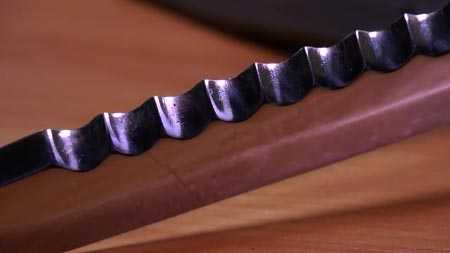 Убрать хрупкость, дать изделию пластику помогает процесс, который называется «отпуск». Сначала с клинка счищают нагар, потом его снова отправляют в печь и нагревают до цвета «побежалости» — это когда на металле образуются радужные цвета, а кончик ножа становится синеватым. Поймать этот момент — настоящее искусство. И сразу после этого клинок быстро остужают в ледяной воде.