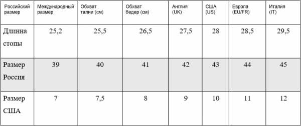 Данная таблица является ориентиром в выборе одежды и не учитывает индивидуальные особенности вашего телосложения.