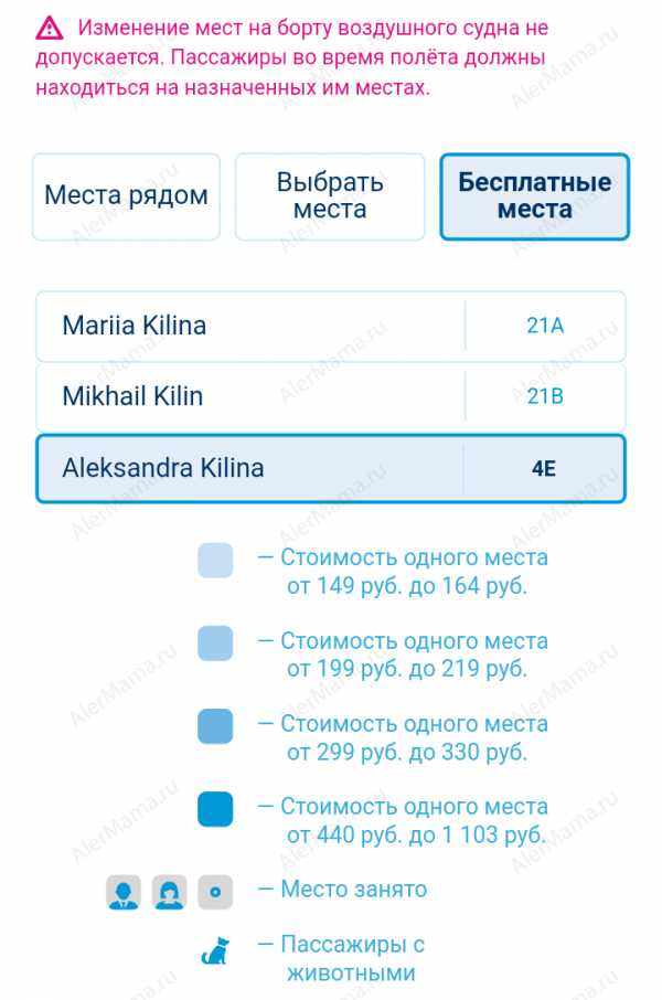 - Функция онлайн регистрации на рейс доступна только для пассажиров, которые выбрали места в самолете (выбор мест – услуга платная, и без ее приобретения нельзя зарегистрироваться на рейс через интернет в удаленном режиме). Места можно выбрать при оформлении брони, либо позже, позвонив в контактный центр по работе с клиентами. Это связано с тем, что если вы отказались от услуги выбора места, то места распределяются автоматически при регистрации на рейс на стойке в аэропорту.