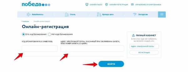 Если нет личного кабинета или доступа в него, проходи регистрацию по номеру билета или коду бронирования. Зайди на сайт pobeda.aero, справа вверху ищи пункт меню Онлайн регистрация и переходи по ссылке.