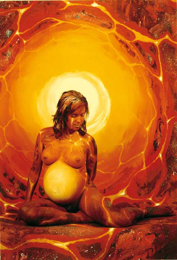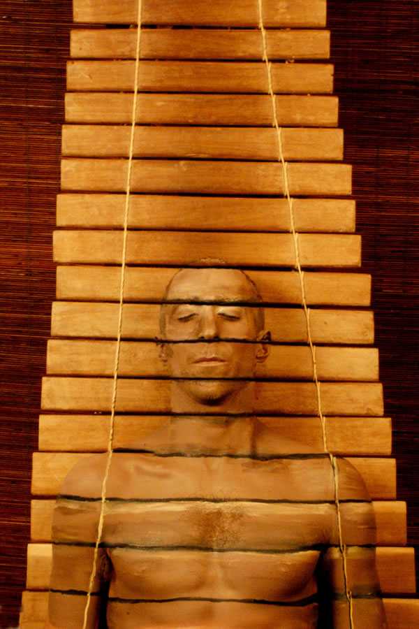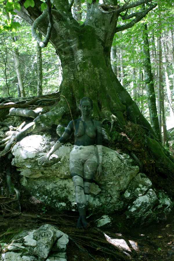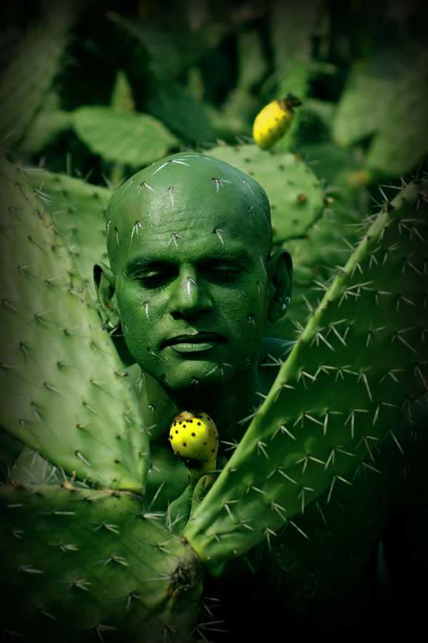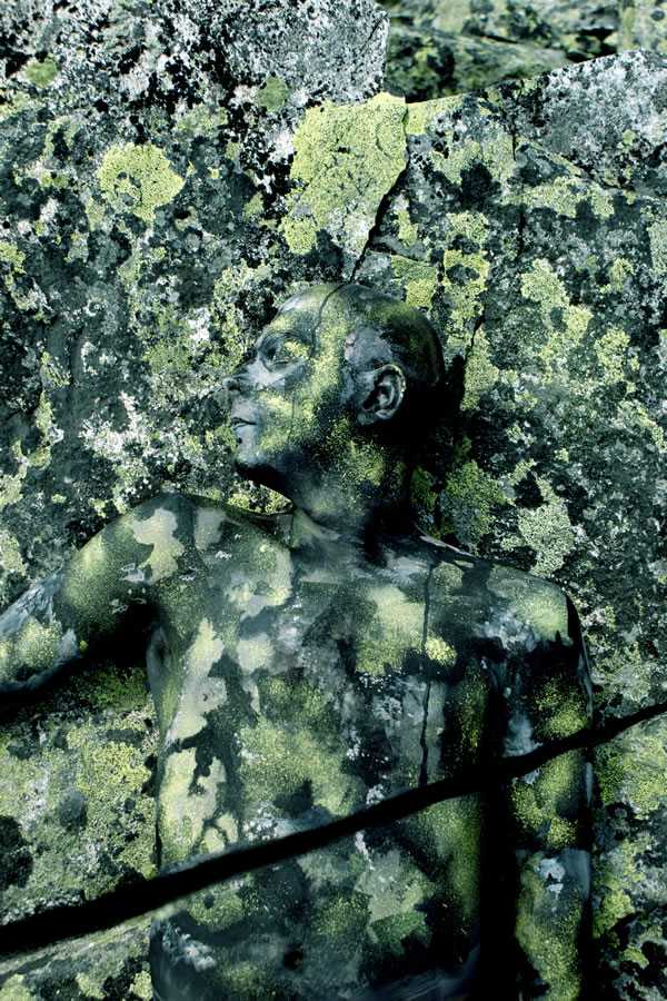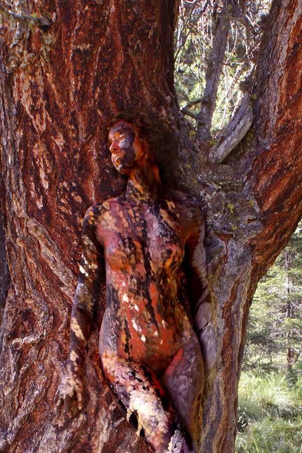 Не менее интересны его работы, где он соединяет человеческое тело с ландшафтом, полностью погружая человека в природное окружение, сливая его в одно целое со стволами деревьев, листьями, плодами, цветами и превращая то в древесную кору, то в часть растрескавшейся от жары земляной корки.