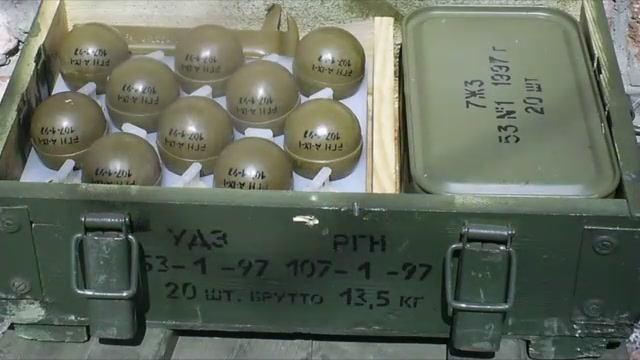 Для транспортировки гранаты пакуются в деревянные ящики по 20 штук, запалы находятся отдельно в металлической банке в ящике вместе с гранатами. Вес ящика примерно 13 кг.