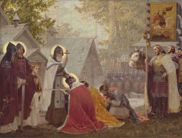 Религия вообще играла большую роль в жизни русских воинов после принятия христианства на Руси и, в особенности, ко времени начала избавления от монголо-татарского ига. Известно то влияние, которое оказывали на легендарного князя Дмитрия Донского православные святители — митрополит Алексий, Сергий Радонежский, митрополит Киприан. Известно, что именно православные священнослужители сыграли ключевую роль в формировании идеи освобождения Святой Руси от Золотой Орды, они же определяли и внешнюю политику русских княжеств, особенно по отношению к «иноверческим» образованиям — той же Орде или орденам крестоносцев. Иеромонах Сергий Радонежский, в частности, оказывал большое влияние на Дмитрия Донского, и именно он убедил его покончить с вековой зависимостью от Орды и порвать всякие отношения с ордынским ханом и с беклярбеком Мамаем.