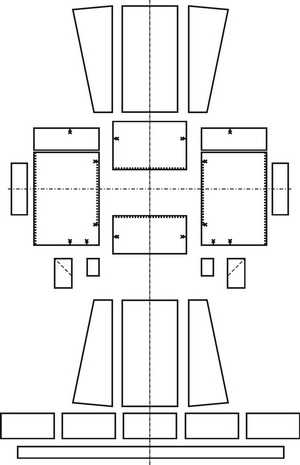 Линия середины переда и спинки, плечевого перегиба | Складки | ||
