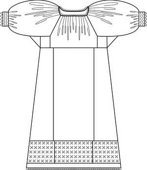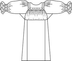 1. Покрой ее был простым, свободным, и состояла она из прямых деталей. Для удобства под мышками вставлялась ластовица.