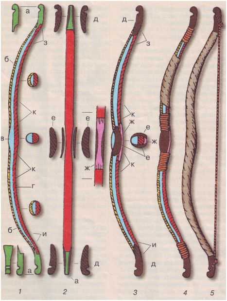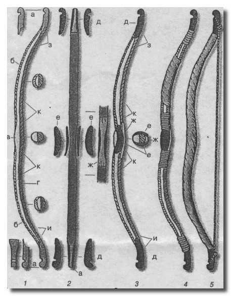 ж — нижние накладки рукояти с внутренней стороны лука;