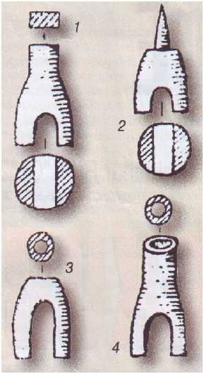 Возле днища тул расширялся до 12-15 см в поперечнике, посередине корпуса его диаметр составлял 8-10 см, а у горловины тул вновь несколько расширялся. В таком футляре стрелы держались плотно, и в то же время оперение их не сжималось, наконечники при вытаскивании не цеплялись.
