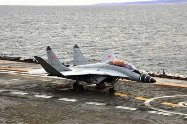• Справка: МиГ-29К является многофункциональным истребителем поколения «4++» и может базироваться на авианосцах водоизмещением не менее 28 тысяч тонн. Самолёт имеет складное крыло, обладает малой заметностью и увеличенной ёмкостью топливных баков. МиГ-29К способен развивать скорость до 2,2 тысячи километров в час, и совершать перелеты на расстояние до 1,5 тысячи километров.