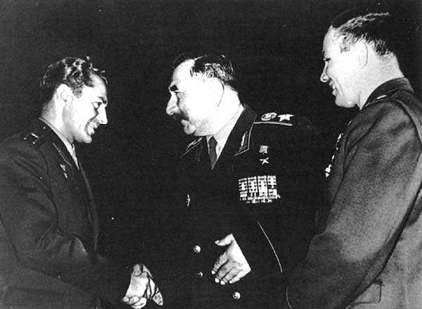 Указами Президиума Верховного Совета СССР от 1 февраля 1958 года, 24 апреля 1963 года и 22 февраля 1968 года удостоен звания Героя Советского Союза.