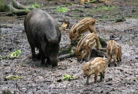 Такое животное как вепрь (кабан) делится на 25 подвидов, для которых характерными чертами являются коренастое тело с большой головой, широкими ушами и небольшими глазами. Все взрослые особи защищают свои стада. Каждая самка способна приносить приблизительно по пять поросят ежегодно, каждый из которых после своего рождения может весить около половины килограмма. Сама природа позаботилась о безопасности малышей и окрасила их в полоску, что делает маленьких кабанчиков менее заметными, в отличие от взрослых вепрей с темным окрасом. Поскольку дикие свиньи чаще всего объединяются в огромные стада в осеннюю пору, чтобы защищать свой молодняк, даже волки не всегда решаются нападать на свиное потомство.