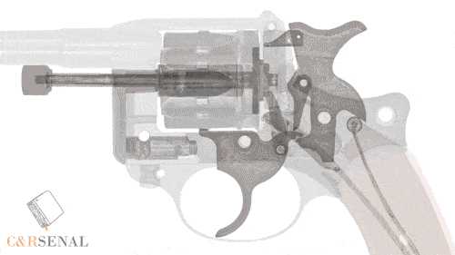 Особенностью этого револьвера является простота разборки. Для разборки необходимо отвинтить соединительный винт и повернуть левую стенку; после этого револьвер будет полностью открыт и легко может быть разобран в порядке, аналогичном при разборке револьвера Кольта.
