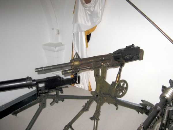 Станковый пулемёт FIAT-Revelli M1914 ( слева ) — отличался фееричной системой питания патронами, но магазина от него на выставке, увы, не было.