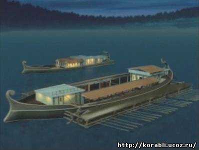 С появлением новых и новых находок менялось мнение о кораблях античной эпохи. Открытие сделанное на озере Nemo в 24 км от Рима, заставило полностью пересмотреть все взгляды на римские суда. Роскошные корабли прежде не находили никогда. Когда два судна подняли на поверхность озера, стали видны их истинные размеры. Они заставили переписать историю и взглянуть на неугомонную роскошь императоров. Корабли имели около 70 м в длину и 20 м в ширину. Беря во внимание одномильное озеро Неми — корабли были огромны. Но более удивительным было качество их исполнения и технологии. Большие корабли настоящее сокровище для историков и археологов. Там были мраморные полы, водопровод с горячей и холодной водой. Это были плавучие дворцы с позолотой, мозаичными полами, а с другой стороны они отражали технические возможности римских судостроителей. На свинцовых трубах, которые были найдены на месте раскопок, ученые увидели странные знаки, которые значили имя деспотичного императора Caligula. Он стал императором в возрасте 25 лет. Власть и богатство сделали свое дело. Он заслужил репутацию жестокого садиста тративший богатство ради наслаждения и удовлетворения собственных чувств. Но его слабостью было море, он являлся потомком известных моряков двумя поколениями ранее.