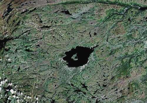 Озеро Мистастин на полуострове Лабрадор в Канаде не что иное как след от падения метеорита 38 миллионов лет назад. Падение метеорита вызвало образование кратера диаметром 28 километров, которое впоследствии заполнилось водой. Посредине озера, образованного падением метеорита, есть остров, который ,по-видимому, образовался вследствие неоднородной структуры упавшего метеорита.