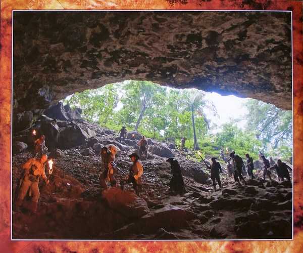 Вход в пещеру. Для большинства туристов место, известное как «Синяя комната» или «Синяя пещера». Аборигены Гавайев называют это великое и сакральное место, расположенное на северном побережье Кауаи, Ваийакапала. Изысканный грот был выбран в качестве входа в пещеру, которая ведет с Источнику Молодости. Это верный выбор, потому что коренные жители Гавайев верят, что воды Ваийакапалы имеют силы, дающие жизнь. Уместно было и то, что ежедневные съемки там начинались всякий раз с красивого и глубокого спиритуального ритуала благословения, что давал гавайский культурный деятель.