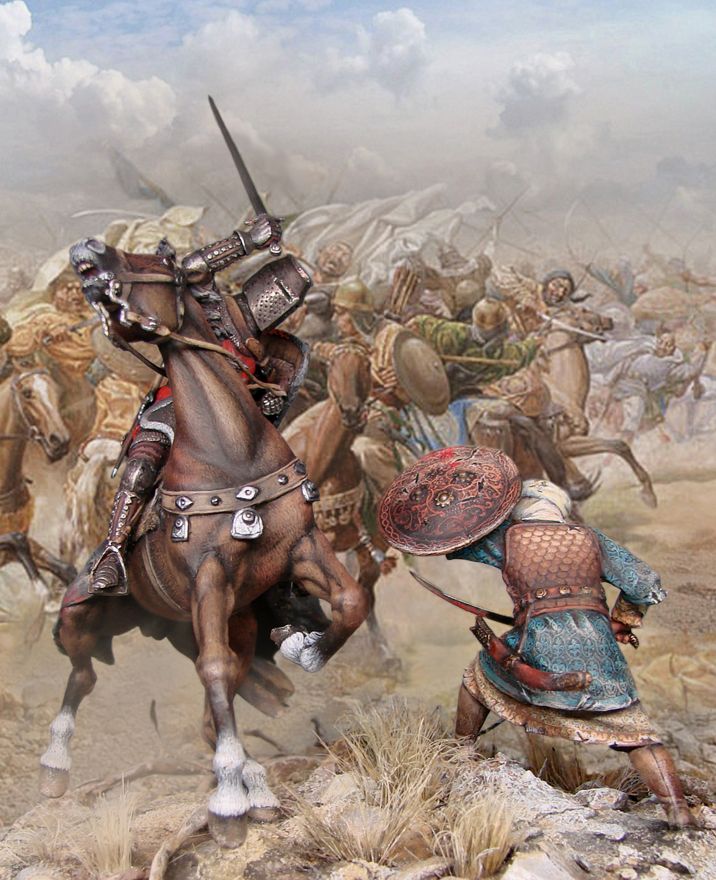 Чтобы компенсировать в целом низкий уровень лояльности и морального духа новобранцев, сарацинские лидеры все больше зависели от наемников. Они были преимущественно выходцами из кочевых племен азиатских степей, но включали и армян, что еще больше увеличивало общее разнообразие сарацинских сил.