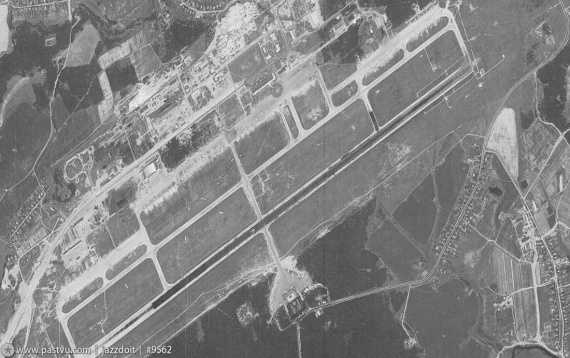 Аэропорт еще с одной взлетно-посадочной полосой. В нижней части снимка — международный терминал, существовавший до 1978 года. Источник: Рассекреченные спутниковые фото США, сделанное в 1966 году