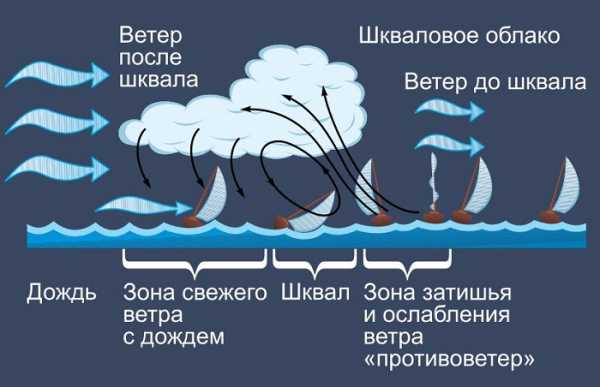Когда шквал закончился, от фрегата не осталось никаких следов. Он опрокинулся и затонул. Это пример так называемого одинокого шквала, достаточно редкого и мало предсказуемого явления. Обычно шквалы образуют серию. В таком случае говорят о шквалистом ветре.