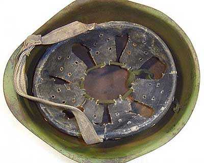 Стальной шлем «М17 Sohlberg» из партии, оставшейся в Финляндии. Подтулейное устройство обшито оленьей коже. Экземпляр, очевидно, остался от финского «мчс» — черная краска не до конца удалена. Источник: forum-antikvariat.ru