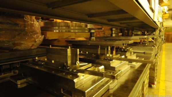 Штамповочные машины, которые изготавливают более чем восьмисот деталей ножа.