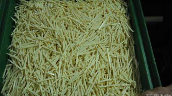 Здесь мы видим контейнеры с пинцетами и зубочистками. Задача рабочих – быстро прикрепить детали к поступающим к ним по конвейерной ленте ножам.
