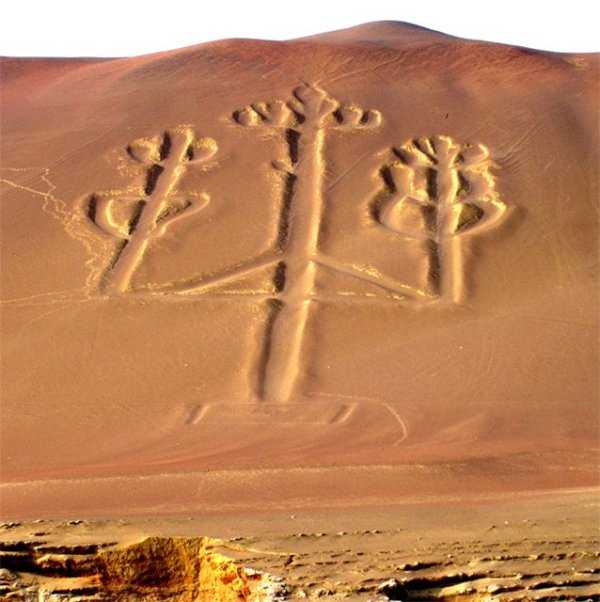 А це вже перуанська пустеля Наска, відома своїми загадковими написами та лініями. Сьогодні існує більше 30 гіпотез про значення і походження тамтешніх малюнків. Та що вони насправді означають, точно не знає ніхто.