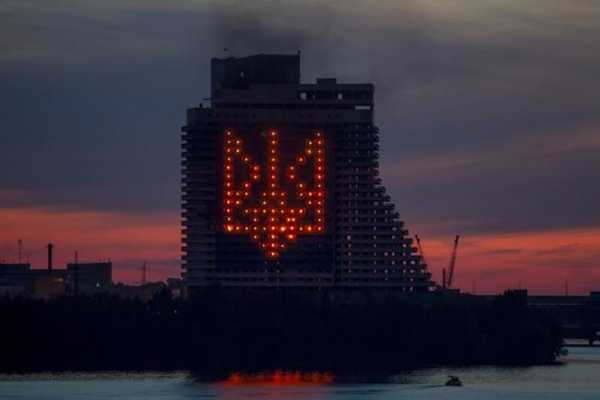 Найбільший в Україні тризуб. Флешмоб влаштували жителі Дніпропетровська. Над містом цей символ Української держави засяяв після заходу сонця 1 липня цього року. Таким оригінальним способом українці вшанували пам’ять усіх, хто загинув під час революції і військових дій у зоні АТО.