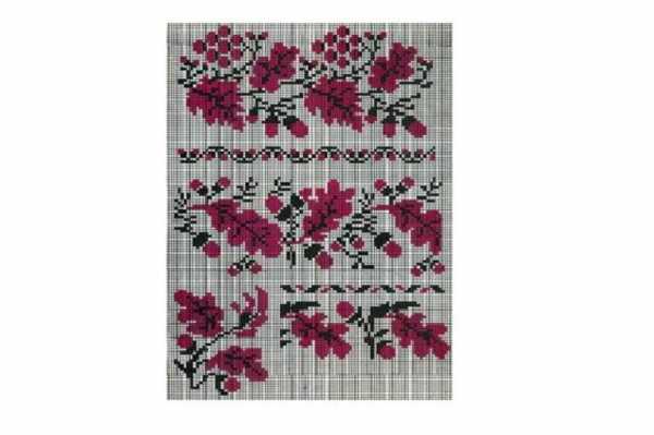 А на наступному візерунку троянди укладені в систему геометричного узору. Це не просто квіти – це квіти-зорі, що уособлюють уявлення народу про Всесвіт як систему. Ви, певне, помітили, що зорі з’єднані ланцюжками. Це також свідчить про непорушний закон об’єднаного космосу.