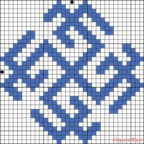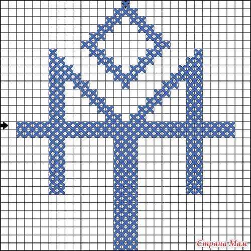 Сам символ и рамочка вышивается желтым, а фон — синим. Можно фон не вышивать, если канва или ткань синяя.