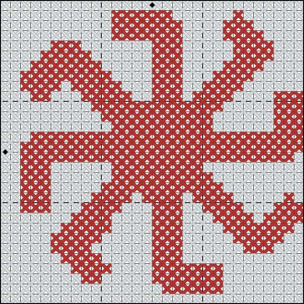 Агни. Изображение, символизирующее огонь. Знак священного жертвенного огня и домашнего очага. Оберег вышитый таким орнаментом помогает защитить дом и передает вековые знания и мудрость. Данный символ также использовался в древне арийской культуре.
