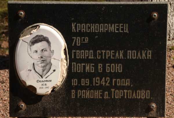 Ещё одна уничтоженная деревня — Тортолово, которая состояла из 33 дворов. Была захвачена немцками в 1941 году, и уже к 1942 ничего не напоминало о том, что здесь была деревня. В 1942 году здесь в ходе наступательной операции советская армия попала в окружение. Тортолово было освобождено лишь в 1944 году.