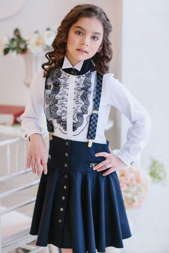 Чаще всего, девочки в таком возрасте начинают интересоваться модой и стилем. Но все же для школы рекомендуем приобрести классические брюки синего цвета и жакет в тон. Что касается юбки, то можно выбирать практически любой фасон. Отличным решением будет плиссированная юбка, которая на пике популярности в 2018 году. Также актуальными остаются трапециевидная и юбка-клеш. Ну и конечно же, нельзя не упомянуть о юбке-карандаш, которая смотрится чуть более женственной. Главное, выбирать длину миди или же до колен.